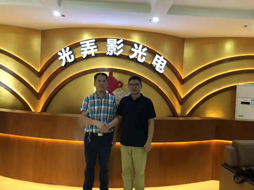 光弄影光電總經(jīng)理梁寧(左)與廣東省光電照明協(xié)會秘書長王中云合影